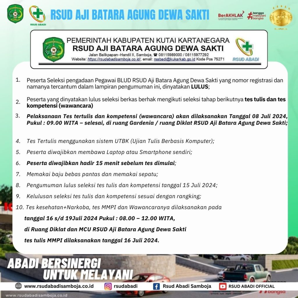 KELULUSAN SELEKSI TES TULIS DAN WAWANCARA JUNI 2024