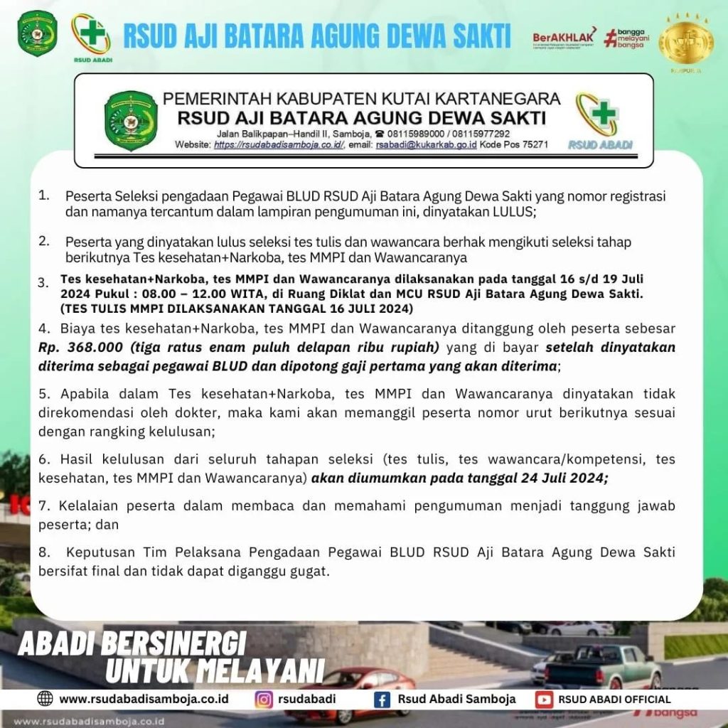 ABADI > Pengumuman > KELULUSAN SELEKSI TES TULIS DAN WAWANCARA JUNI 2024